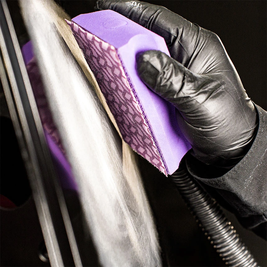 - A lightweight sanding block with a firm-but-flexible backing which helps easily restore contours and bodylines