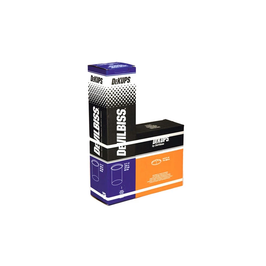 Improve your productivity and efficiency when you use the Devilbiss DeKups DPC-600 Disposable 34 Oz. Cups & Lids. The disposable cup system provides a better fluid flow to allow a better color match. The DeKups liner allows better collapsibility, which ensures that the paint moves better from the gun to the area. The DeKups lid allows better lid locking to prevent messy accidents when the gun is in use.